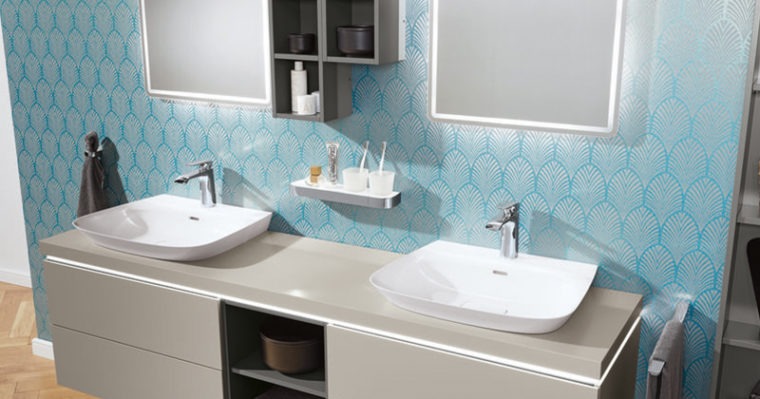 Zusammen mit Unterschrank und Spiegel beziehungsweise Spiegelschrank bildet das Waschtischensemble das Zentrum jedes Badezimmers. Mit hellen und freundlichen Tönen arbeitende Farbkonzepte zur harmonischen Raumwirkung, mit Spiegelflächen und einer Verteilung der Lichtquellen auf unterschiedlichen Ebenen kann der Längsdehnung schlauchförmiger Räume entgegengewirkt werden, und kleine Bäder erscheinen so luftiger und großzügiger.